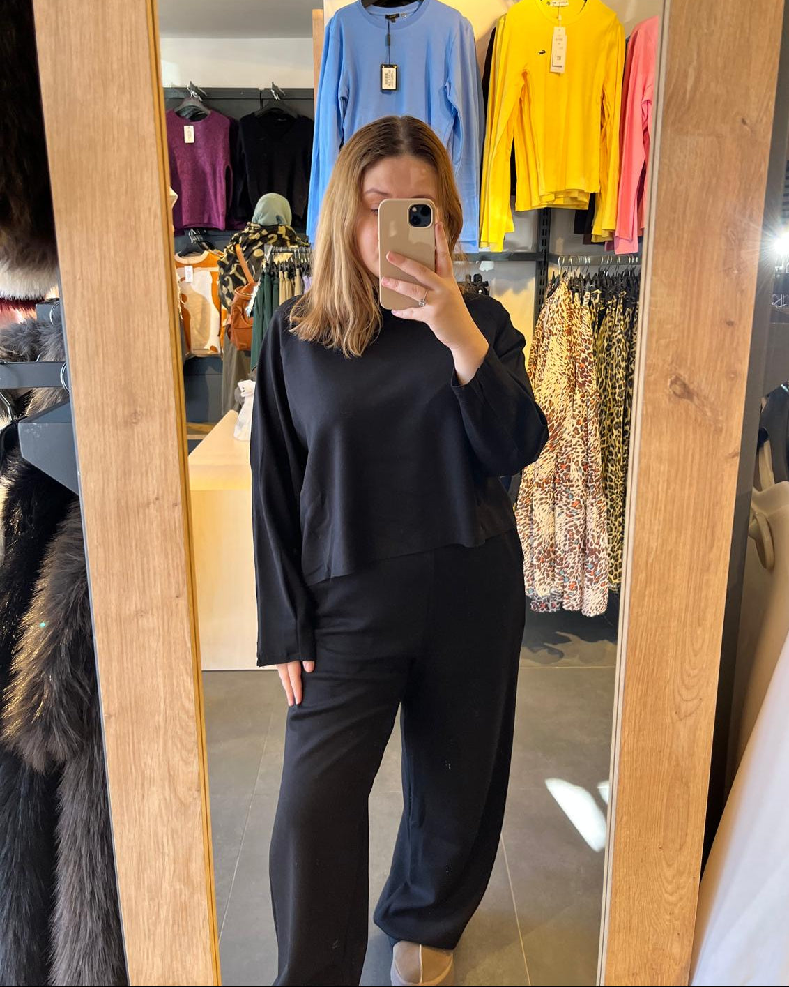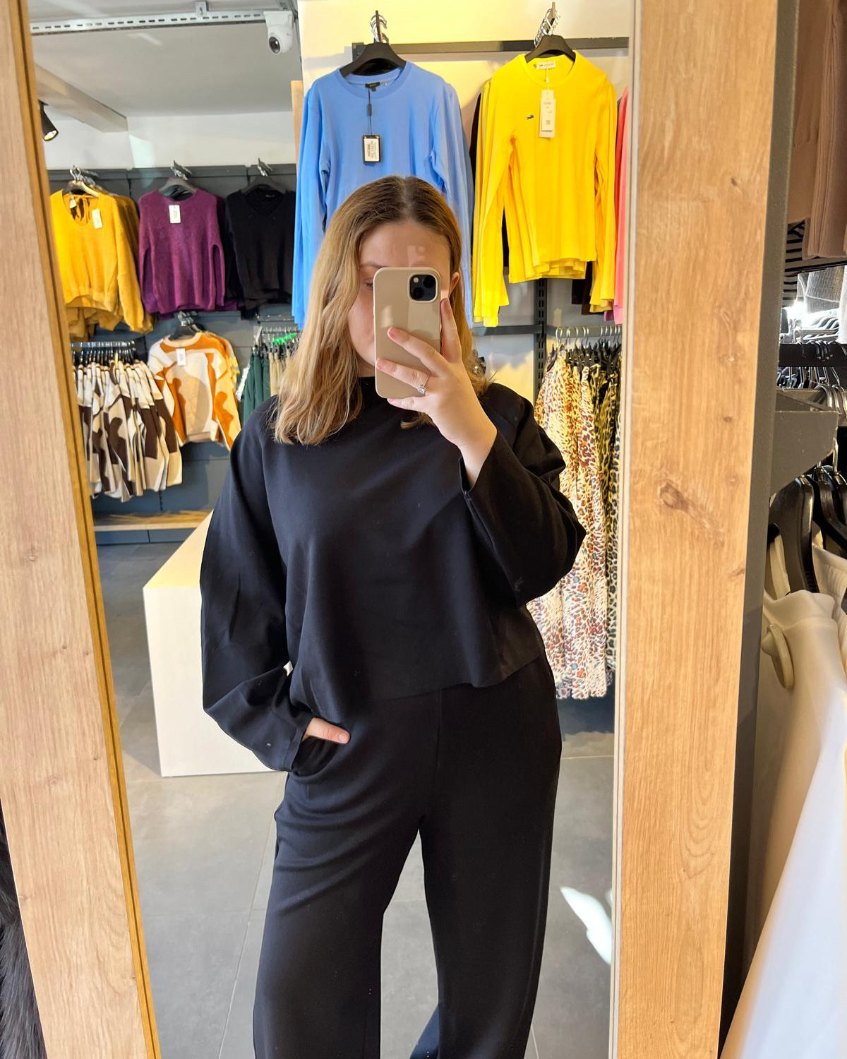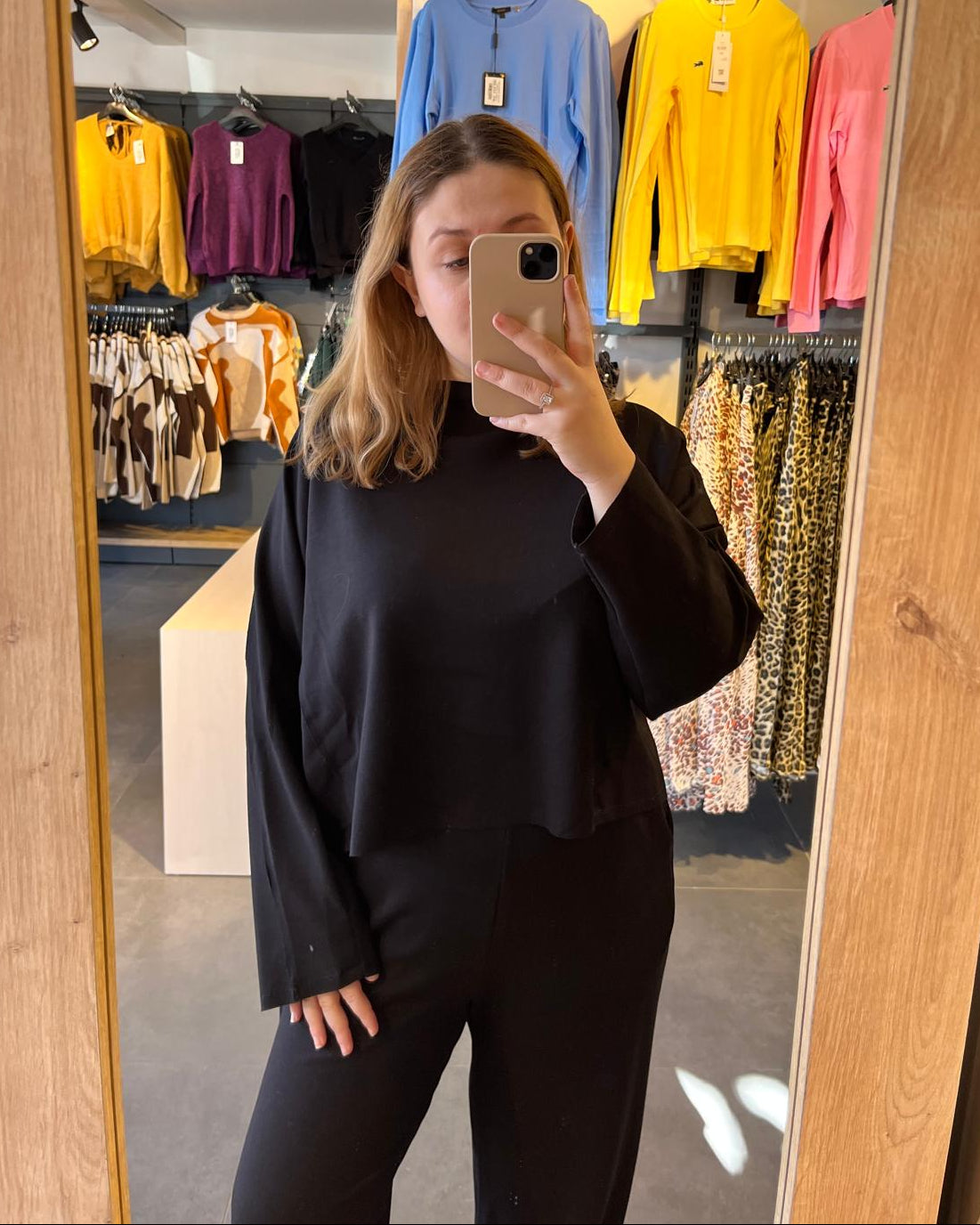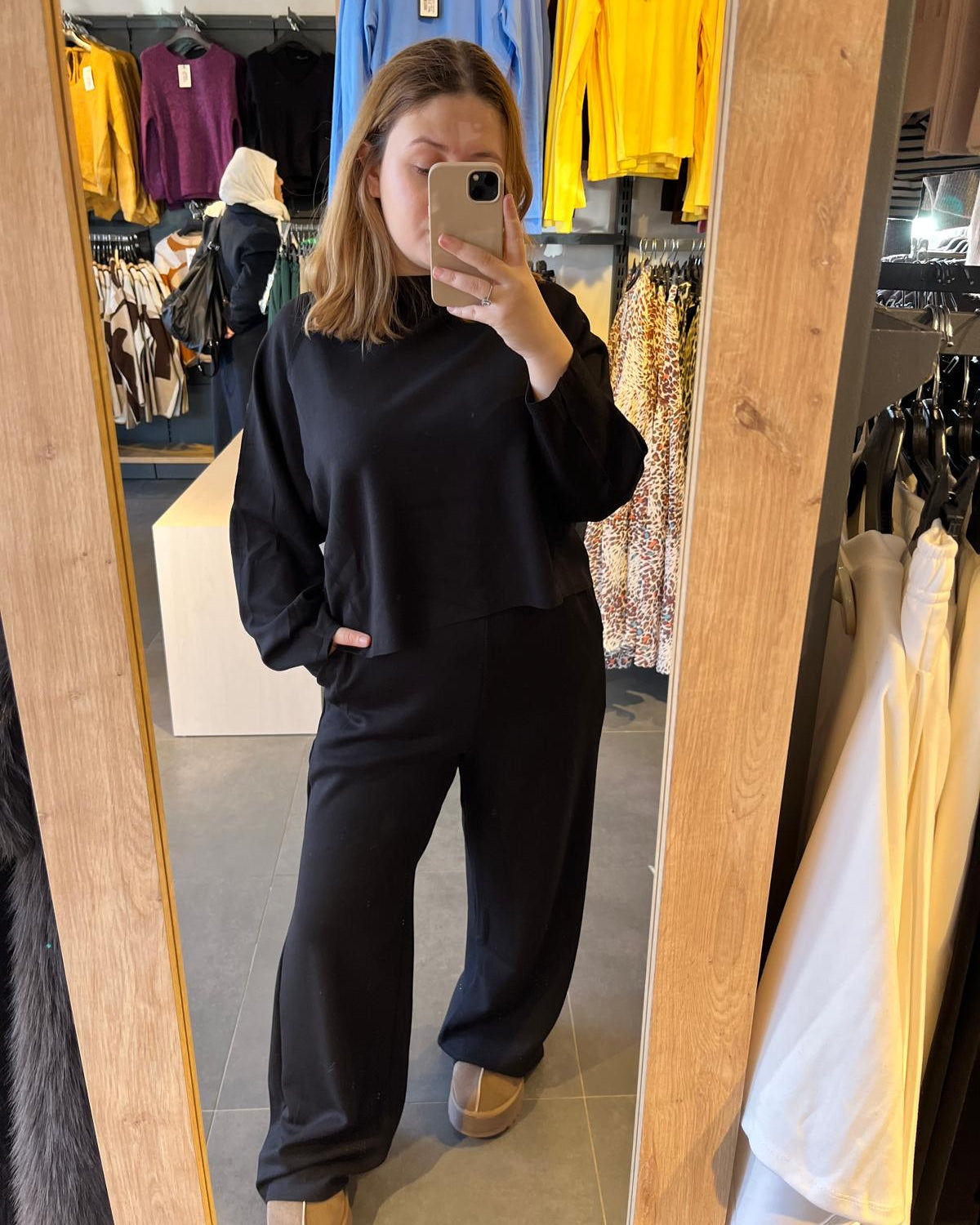 Rahatlığı ve şıklığı bir arada arayan kadınlar için tasarlanan Siyah Yarasa Kol Modal Kumaş İkili Takım, gardırobunuzun kurtarıcı parçalarından biri olmaya aday.