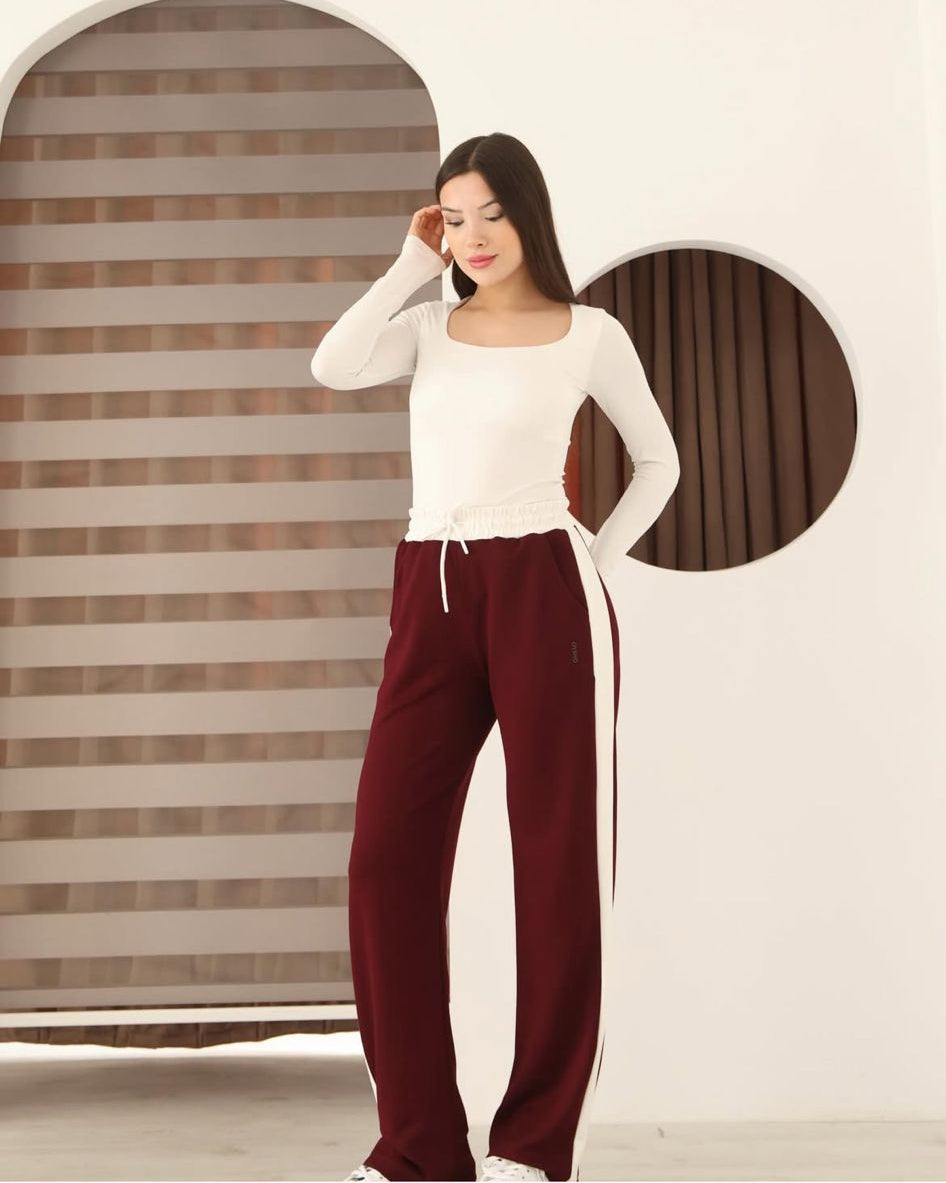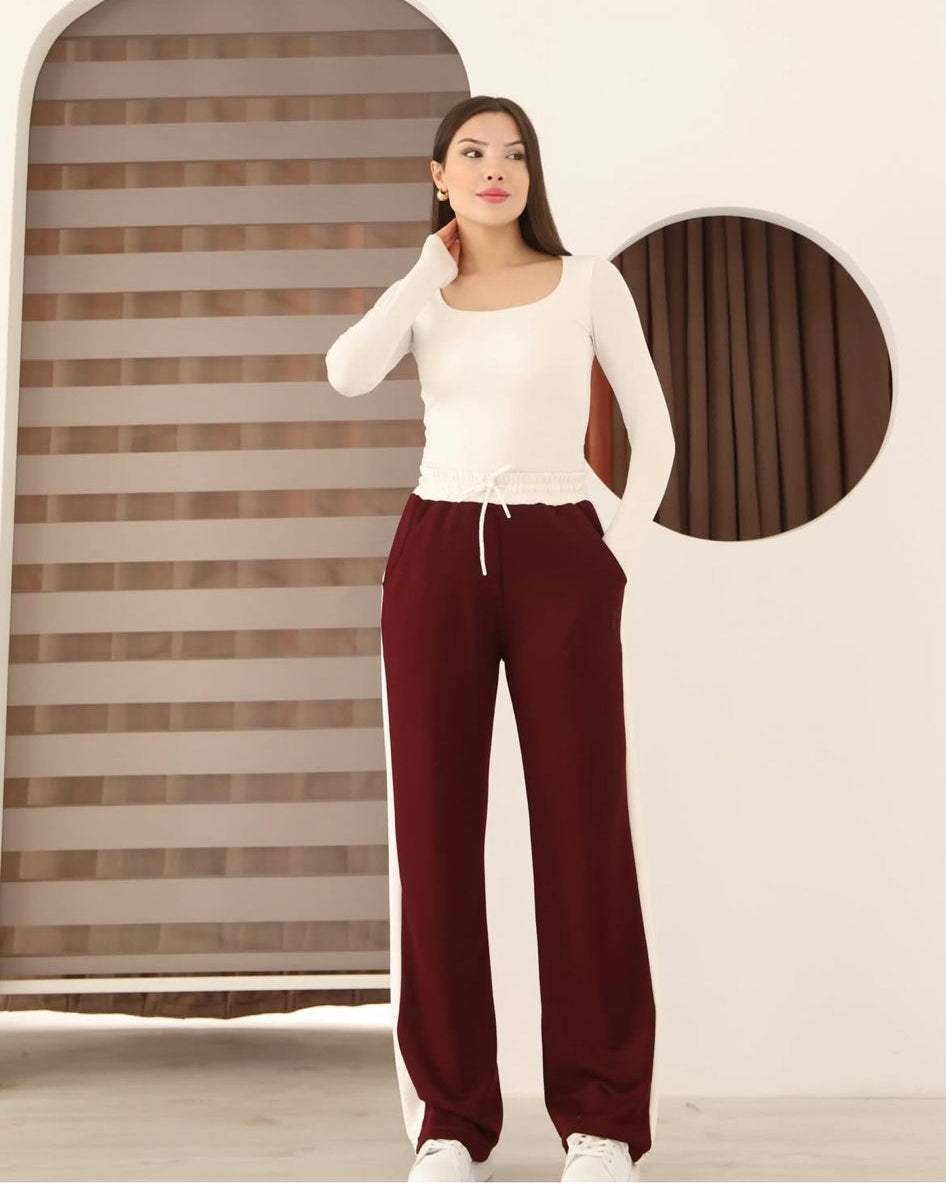 Bordo Garnili Modal Kumaş Kadın Eşofman Alt