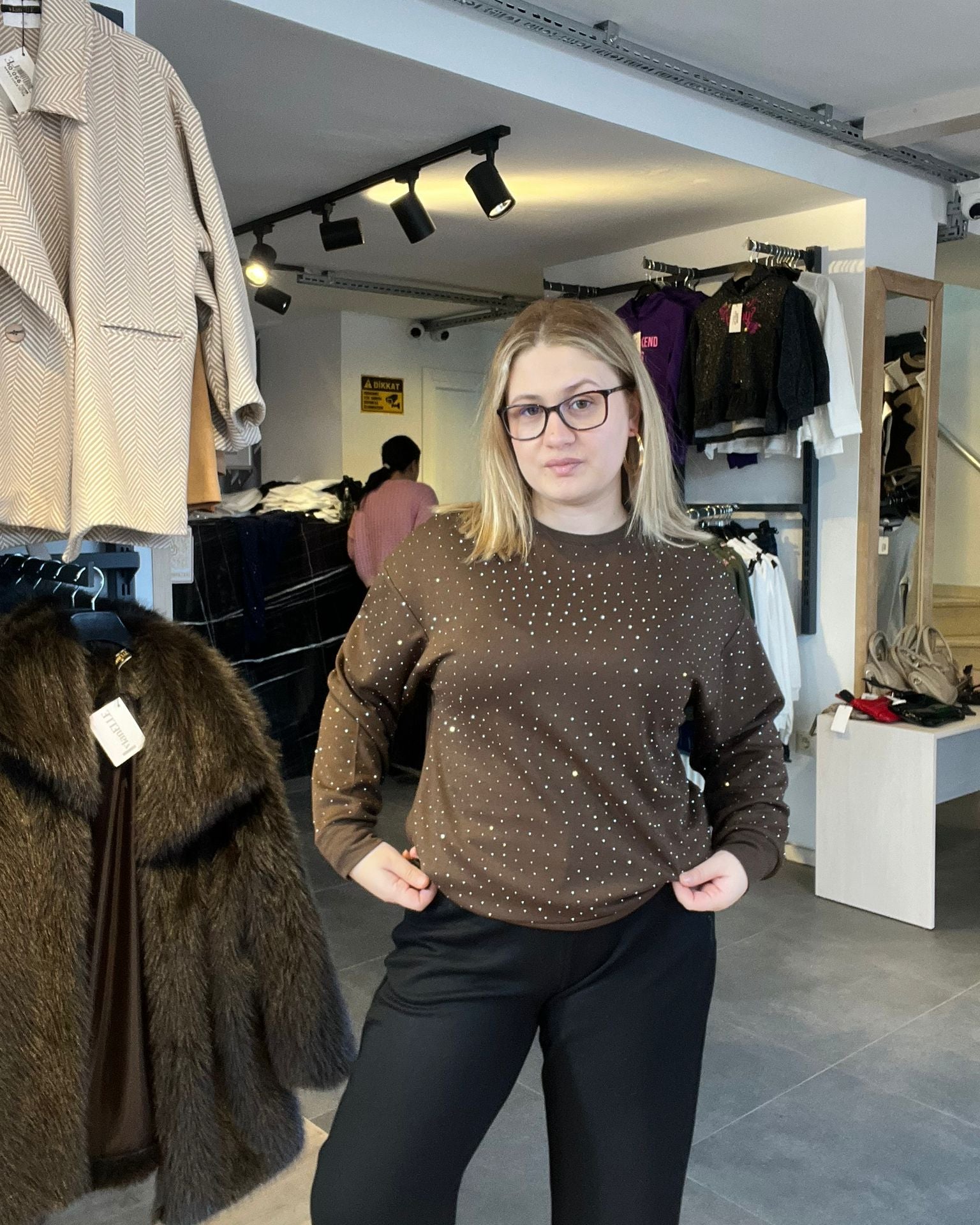 Derin ve sofistike tonu ile öne çıkan acı kahve modal kumaş taşlı tunik, şıklığı konforla buluşturur. Yumuşak dokulu ve nefes alan modal kumaşı gün boyu rahat kullanım sağlarken, taş detayları parçaya zarif ve ışıltılı bir dokunuş katar. Acı kahve rengi ise güçlü, sıcak ve modern bir stil sunar.